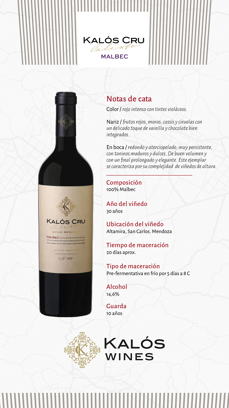 El nombre Calixto es de origen griego y proviene de la palabra Kalós que significa “algo de gran belleza”. Así nace este Gran Petit Verdot Reserva Kalós Cru, inspirado en su persona, elegancia, presencia y largo recuerdo.